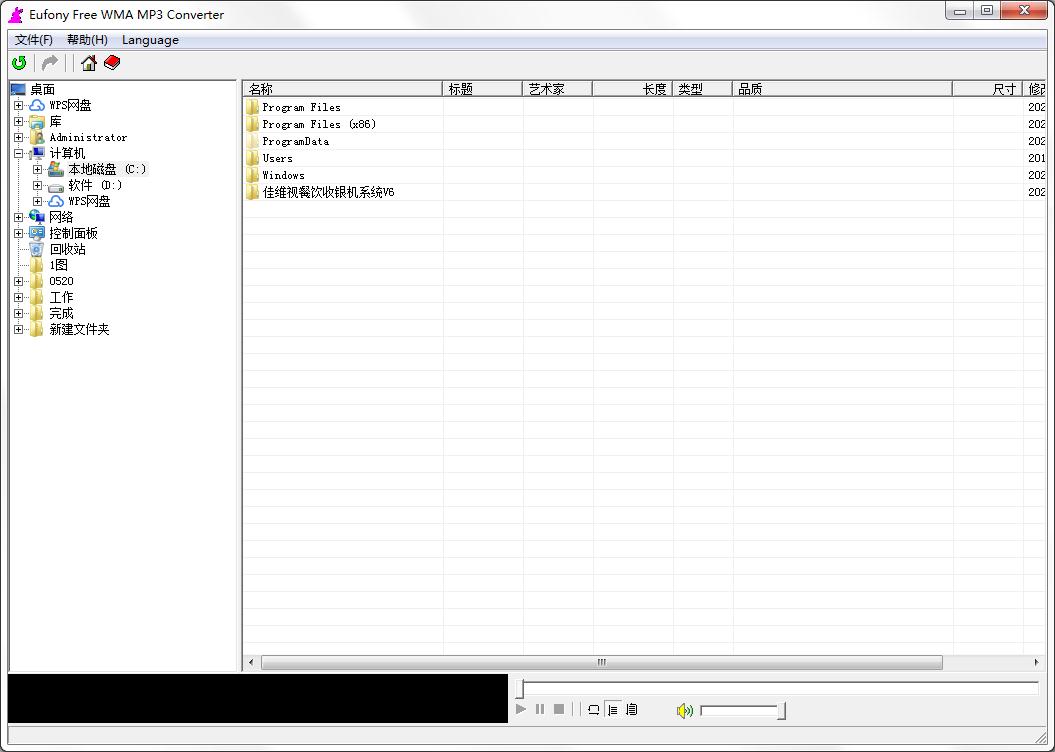 Eufony Free WMA MP3 Converter(wma声音格式转换器)是个功能强大的音频转换器 ,能把WMA转换成MP3,以及MP3转WMA;你也许有些好听的wma格式音乐或歌曲,比如你用Windows媒体播放器抓取的成堆CD,它们总是被保存成WMA。