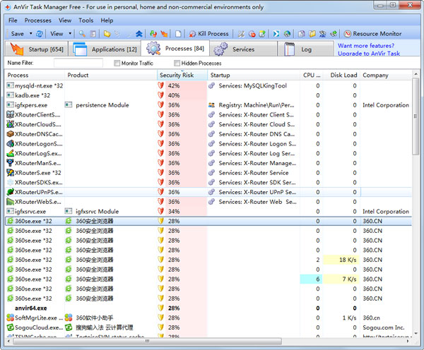 AnVir Task Manager free是一个windows下的免费高级任务管理器,功能强大且小巧,带有非常强大的启动项、进程、服务管理功能之外,还能对系统进行美化,非常实用方便。