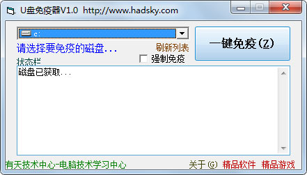 使用方法非常简单,一看就会,如果在免疫时失败,请查看是否已免疫(是否存在autorun.inf,若存在说明已免疫)