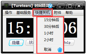 5、快捷关机包括了15分钟后、30分钟后、1小时、2小时等;