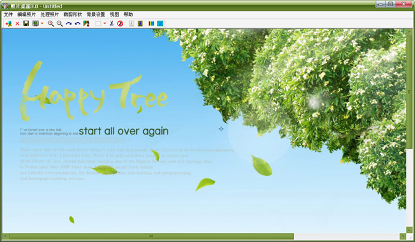 一款能在桌面上自由放置多张照片的桌面编辑软件。哈,你可以不要懂Photoshop技术也可以很方便的把自己女朋友(男朋友)的照片,哦当然,包括所有你喜欢的人,你想要把他放在你的电脑桌面上的人的照片,放到桌面上,只要你拥有他们的照片。