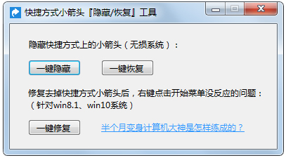 1、shortcut_fix可以在无损系统的情况下,一键隐藏或恢复快捷方式上的小箭头。