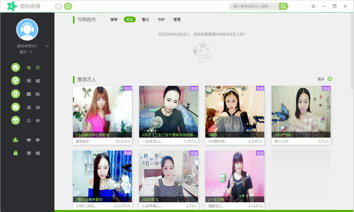 支持数万人同时在线参与互动,堪比小型演唱会;使用酷狗KRC精准歌词、伴奏曲库、点歌技术,把KTV搬到电脑屏幕前;首页高频自动刷新直播间列表,保证直播信息的即时性。