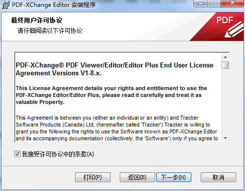 2、点击“我接受许可”,点击“下一步”进行安装。
