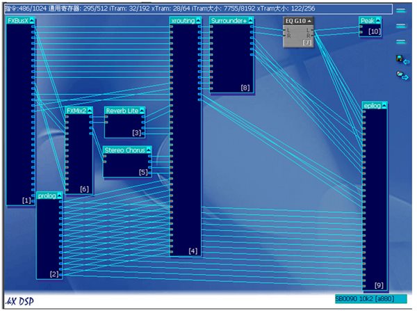 支持低延迟的32通道ASIO,音效插件模块化,优化的DX接口,图形化的DSP模块操作,音质和功能与专业APS声卡有过之而无不及,软件界面多语言支持,软件界面支持皮肤更换,界面如图 。其3538系列驱动经过多次修改已经日臻完善,kx小组在最新的3539版本中有做了大量的改进,该版驱动还对Windows Vista做了初步的支持,ASIO驱动和扬声器测试已经完成。