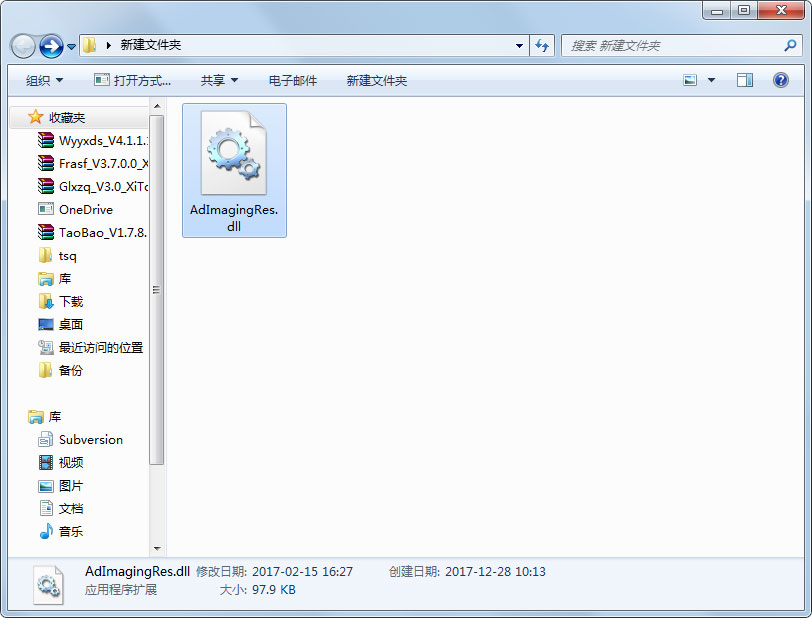 1、下载文件AdImagingRes.dll 22.0.50.0文件到您的桌面上;