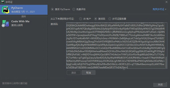 9、选择激活码方式(Activation Code),粘贴该激活插件的通用激活码,点击激活。