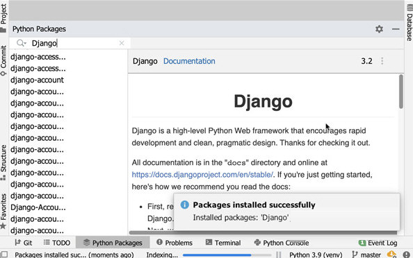7、适用于 Python 软件包的工具窗口,使用新的 Python Packages 工具窗口,在编辑器内即可安装新的 Python 软件包或浏览所有可供下载的软件包,而无需离开编辑器。 您可以随时从主菜单开启:View | Tool Windows | Python Packages。