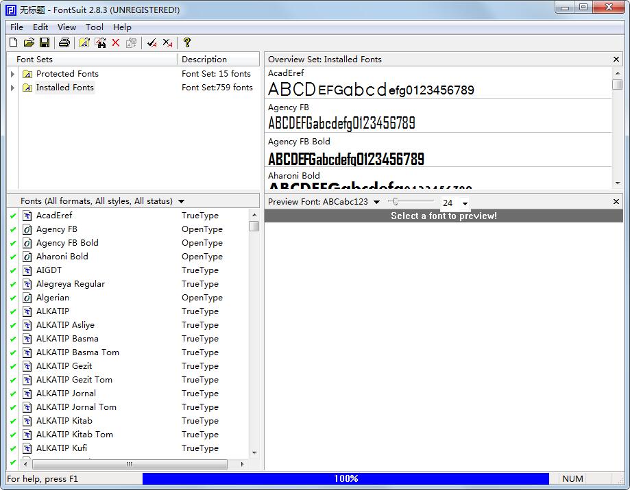 FontSuit是一款系统字体预览软件,可以让用户预览系统字体,能够帮助轻松的分组管理需要使用的字体,让字体管理更方便!