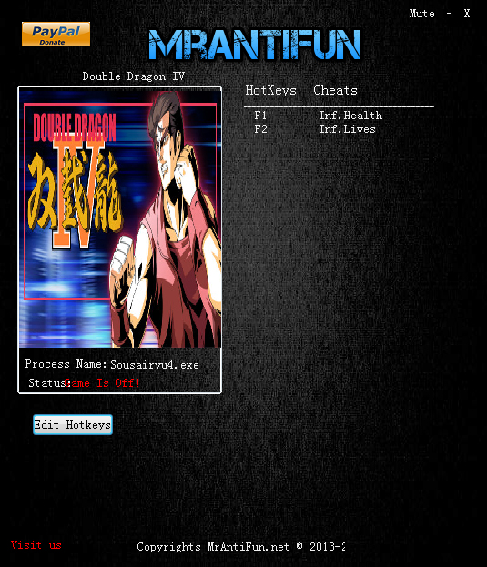 双截龙4两项修改器,可获得无限生命,无限条命这两项实用功能,需要的玩家朋友快来下载使用吧。