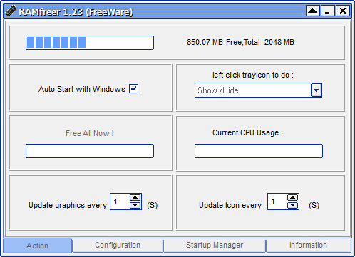 RAMfreer小巧免费的又简单易用的内存管理与清理工具。