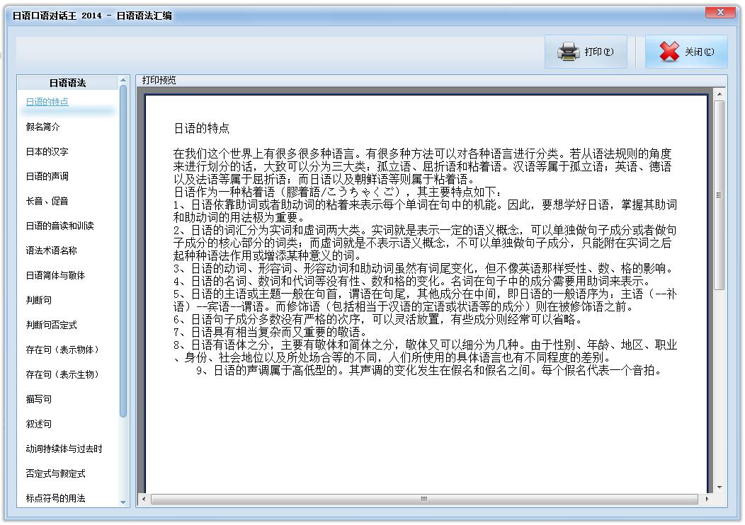 集合了常用生活日语、商务日语、中文常用语脱口成日语、日语900句、日语会话1000句、日语常用语600句、日语初学者400句、常用口头语120句等等8大类常用日语对话和情景对话及日语口语教材,每个大类情景对话都分为若干个小情景对话,让您一目了然选择所要学习的内容。