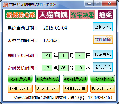钓鱼岛定时关机软件2013版是一款可以设置电脑关机时间,可以设置日期,时间后自动关机,还可锁定本软件。