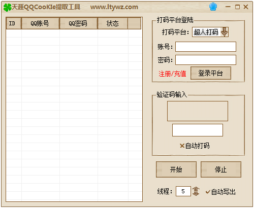 天涯QQcookie提取工具是一款纯绿色免安装的工具,它的功能就是帮助用户快速提取qq空间的cookie信息,用户可以通过设置这款QQcookie提取器达到自动提取QQcookie的目的。