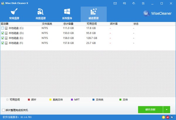 Wise Disk Cleaner X是一个界面友好,功能强大,操作简单快捷的电脑垃圾及痕迹清理工具,通过系统瘦身释放大量系统盘空间,并提供磁盘整理工具。它能识别多达50种垃圾文件,可以让你轻松地把垃圾文件从你的计算机磁盘上清除。支持自定义文件类型清理,最大限度释放磁盘空间。通过磁盘碎片整理可以有效地提高硬盘速度,从而提高整机性能。