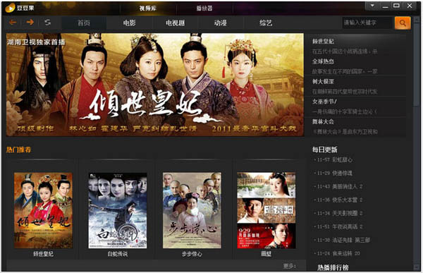 豆豆果视频播放器.是一款集播放与影片库为一体的播放器,程序体积小,界面简洁易用,资源占用低,不含任何流氓插件,缓冲快,电影可随意拖放。|豆豆果播放器拥有庞大的影片库,除用户自行搜索外,我们组建了庞大的编辑团队,24小时给用户推荐各类影片节目,省却了用户找电影看的烦恼。