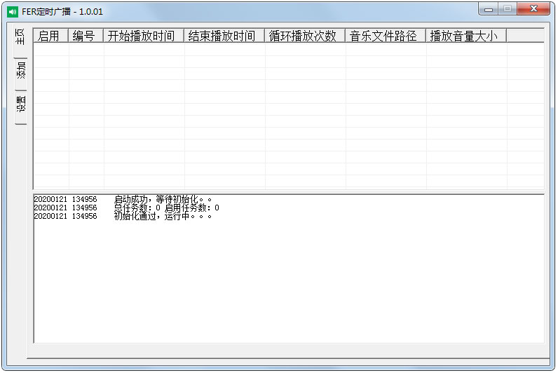 FER定时广播是一款简单实用的电脑定时播放音乐辅助软件,FER定时广播不光可以播放音乐,还支持播放文稿、定时铃声、定时关机等多项功能,适用于学校、工厂、超市、广场等定时打铃和定时播放语音广播内容。