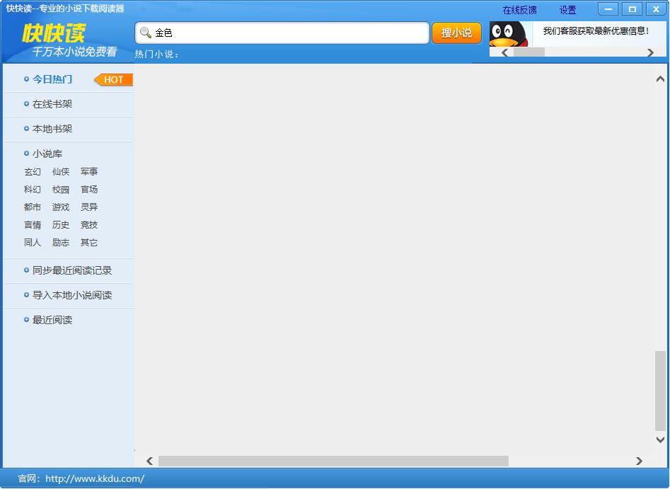 快快读阅读器是一款非常实用的小说阅读软件,拥有海量小说资源,支持上百家主流小说站资源,去伪存真,有效杜绝同名山寨小说、即点即看,支持自动提取文档目录,可以方便查看文档目录,并快速找到自己需要的内容,还具有辨别真伪的功能。