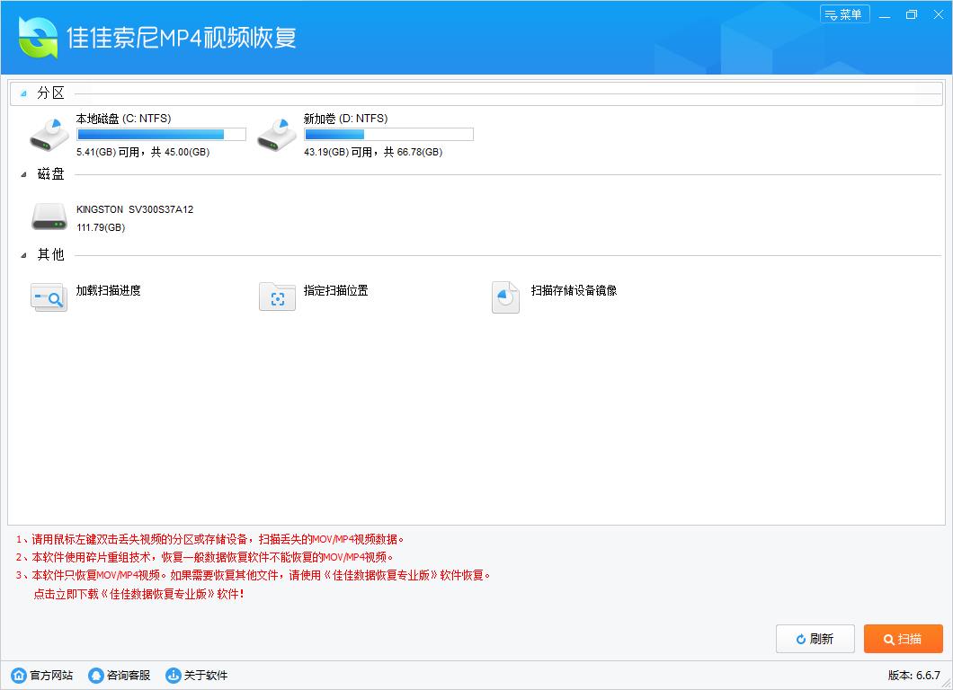 佳佳索尼mp4视频恢复软件是一款功能出众、操作简便的索尼MP4视频恢复器。支持目前索尼相机所有型号,并拥有碎片重组技术,完美恢复索尼微单、单反相机、摄像机拍摄的MP4格式视频,其功能全面快速高效,能够快速帮助用户恢复视频文件。