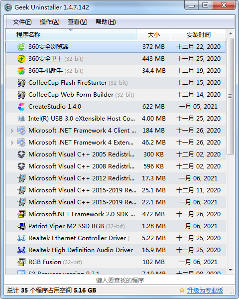 2、界面简单,使用方便。这个软件只有一个主界面。windows中所有已安装的软件会全部显示在这里,而所有和卸载有关的功能都集中在右键菜单中。