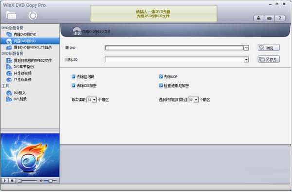 WinX DVD Copy Pro是专门设计用来满足用户最新的DVD备份需求,可帮助您解密&备份DVD到DVD光盘,DVD到ISO,此外,它还可以拷贝DVD为单一的MPEG2文件,包括原始视频轨道和原始的AC3环绕音频.