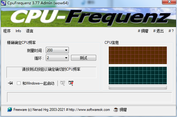 CpuFrequenz绿色安装版是一款优秀的CPU频率检测工具,CpuFrequenz只需要设置好监测频率区域,即可一键检测这个区域内CPU运行状况,而且CpuFrequenz提供了50-950之间的区域供用户选择,还可以检测循环次数。