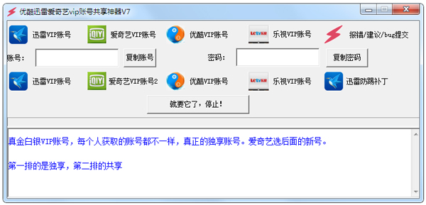 优酷迅雷爱奇艺vip账号共享神器 V2016 绿色版