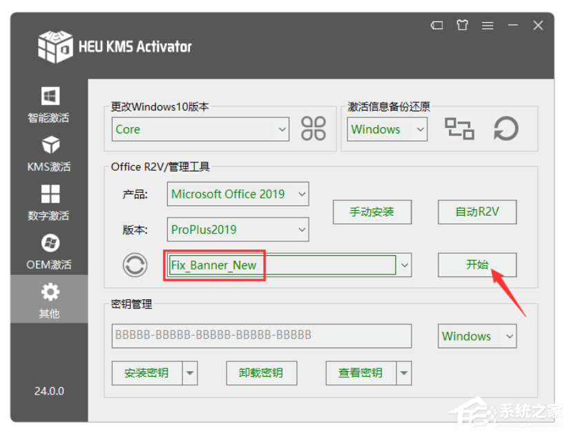 在v24.0.0版本的其他页面中,选择“Fix_Banner_New”,然后点击“开始”即可完成修复。不需要联网,也不需要进行更新等其他操作。